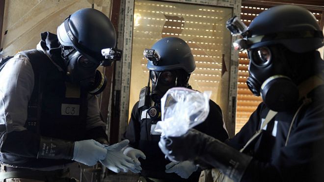 وعهد إلى لجنة تحقيق مشتركة بين الأمم المتحدة ومنظمة حظر الأسلحة الكيميائية تحديد من المسؤول عن هذه الهجمات.